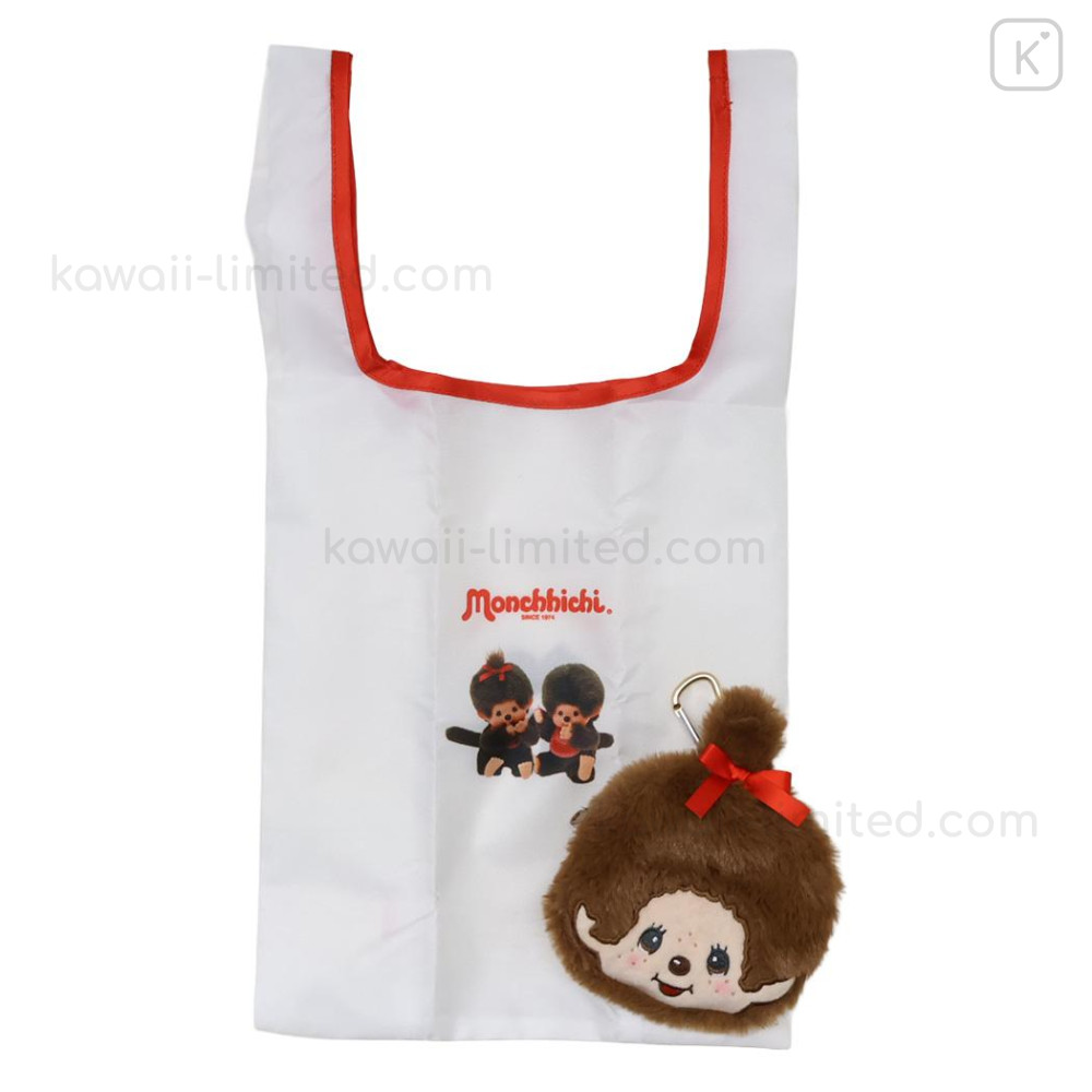Japan Monchhichi Eco Shopping Bag & Mascot Pouch - Girl Pastel White