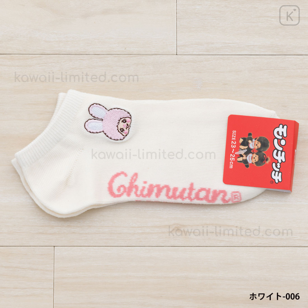 Japan Monchhichi Embroidered Sneaker Socks - Chimutan : White