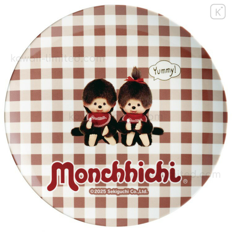 Japan Monchhichi Melamine Plate 20cm - Gingham Brown