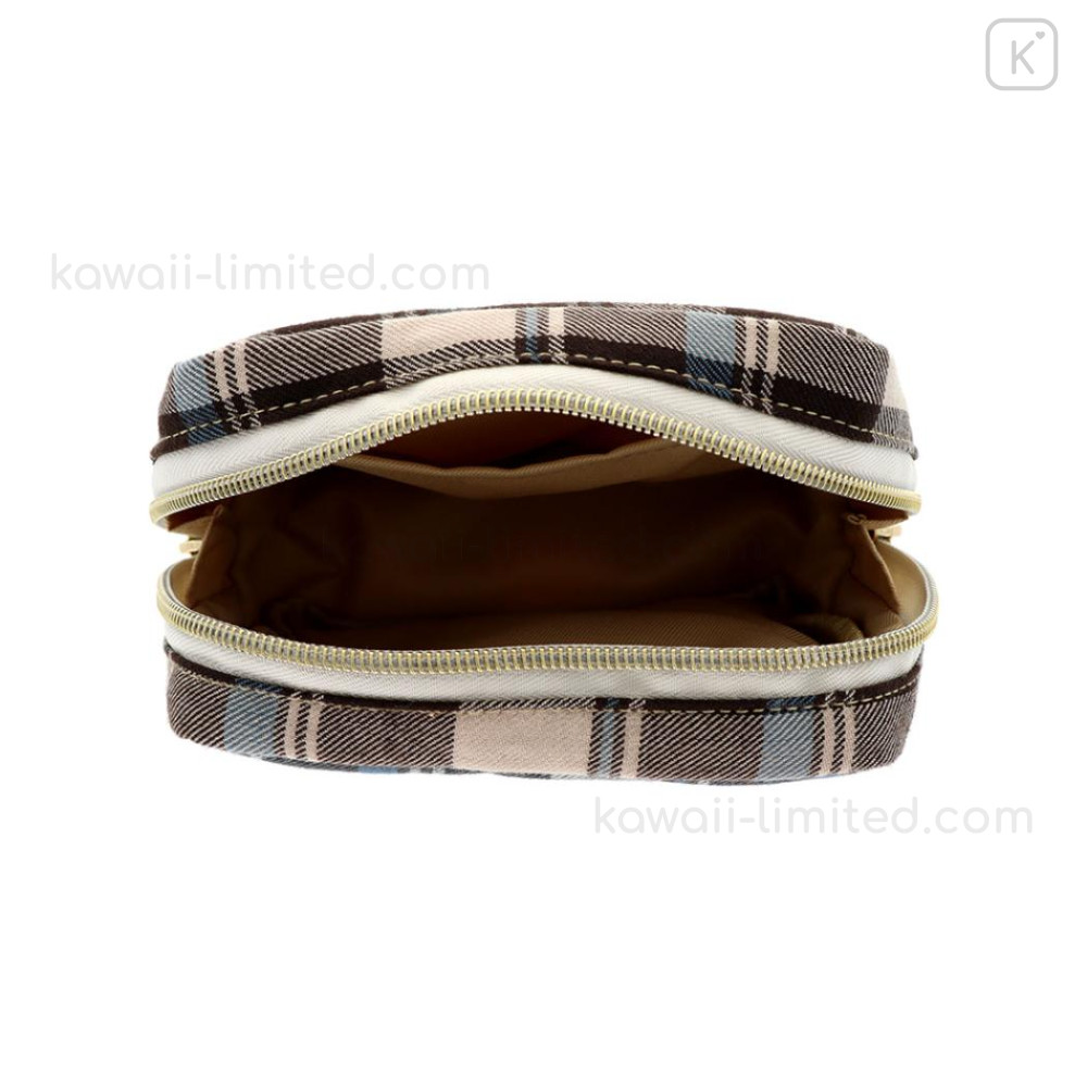 Japan Monchhichi Square Cosmetic Pouch - Plaid