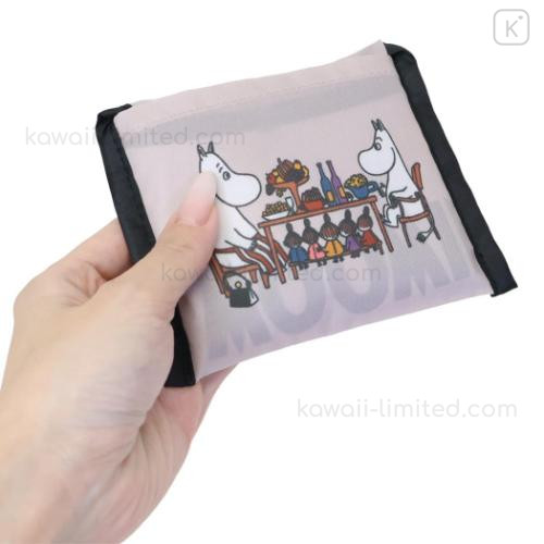 Japan Moomin Eco Shopping Bag With Pocket (S) - Moomintroll & Mom Beige