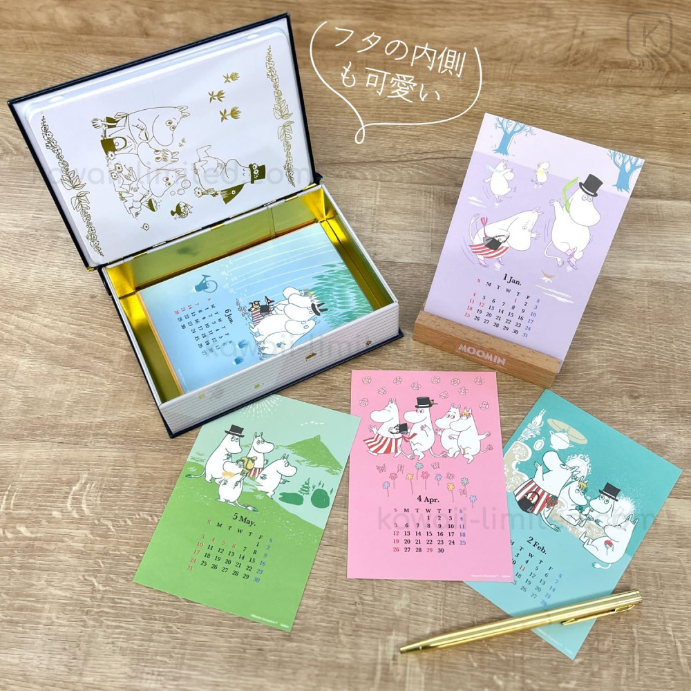 Japan Moomin Mini Desk Calendar - Moomintroll : Navy Book-Shaped Tin 2026