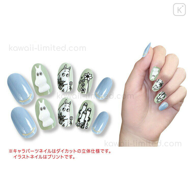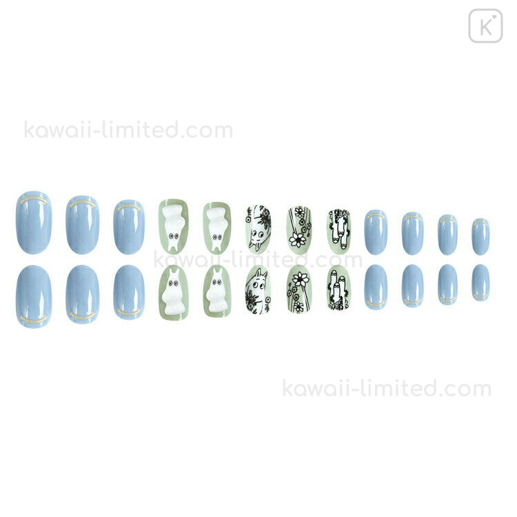 Japan Moomin Nail Tips - Hattifatteners & Moomintroll : Blue Green
