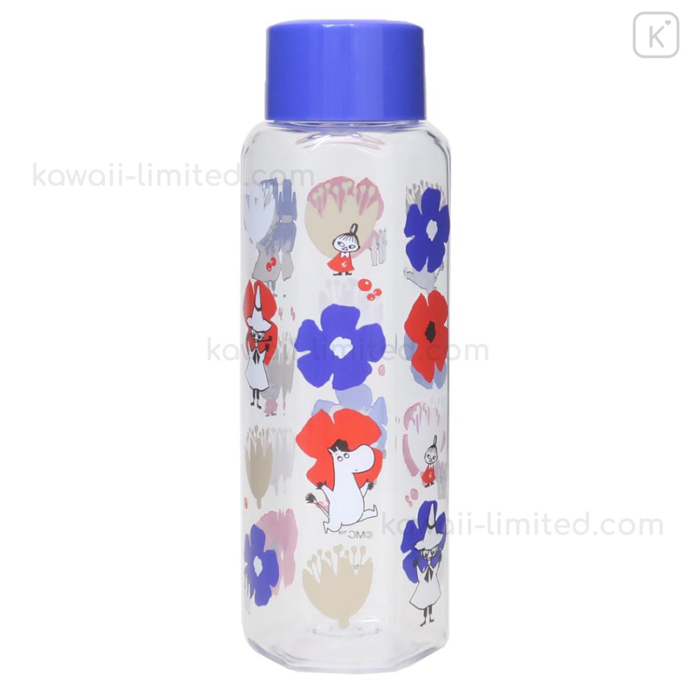 Japan Moomin Water Bottle 350ml - Little My & Moomintroll & Snufkin : Flower Blue