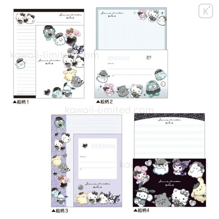 Japan Obakenu × Sanrio Letter Writing Set - Characters Leopard Black