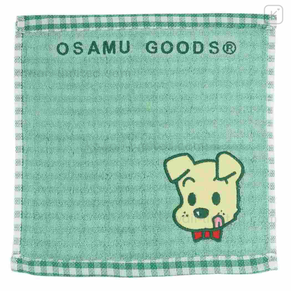 Japan Osamu Goods Mini Towel Jacquard Handkerchief - Gingham Green Dog