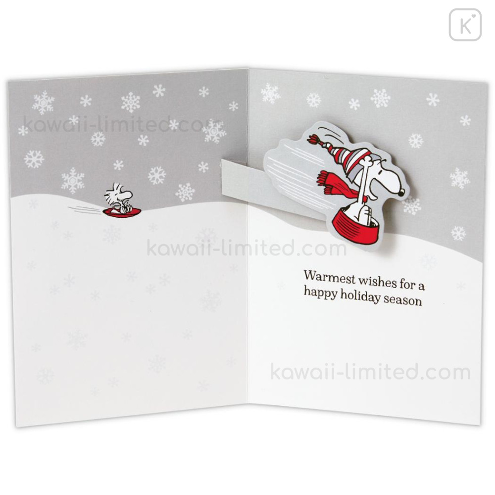 Japan Peanuts 3D Greeting Card - Snoopy & Woodstock : Christmas Sleigh Ride