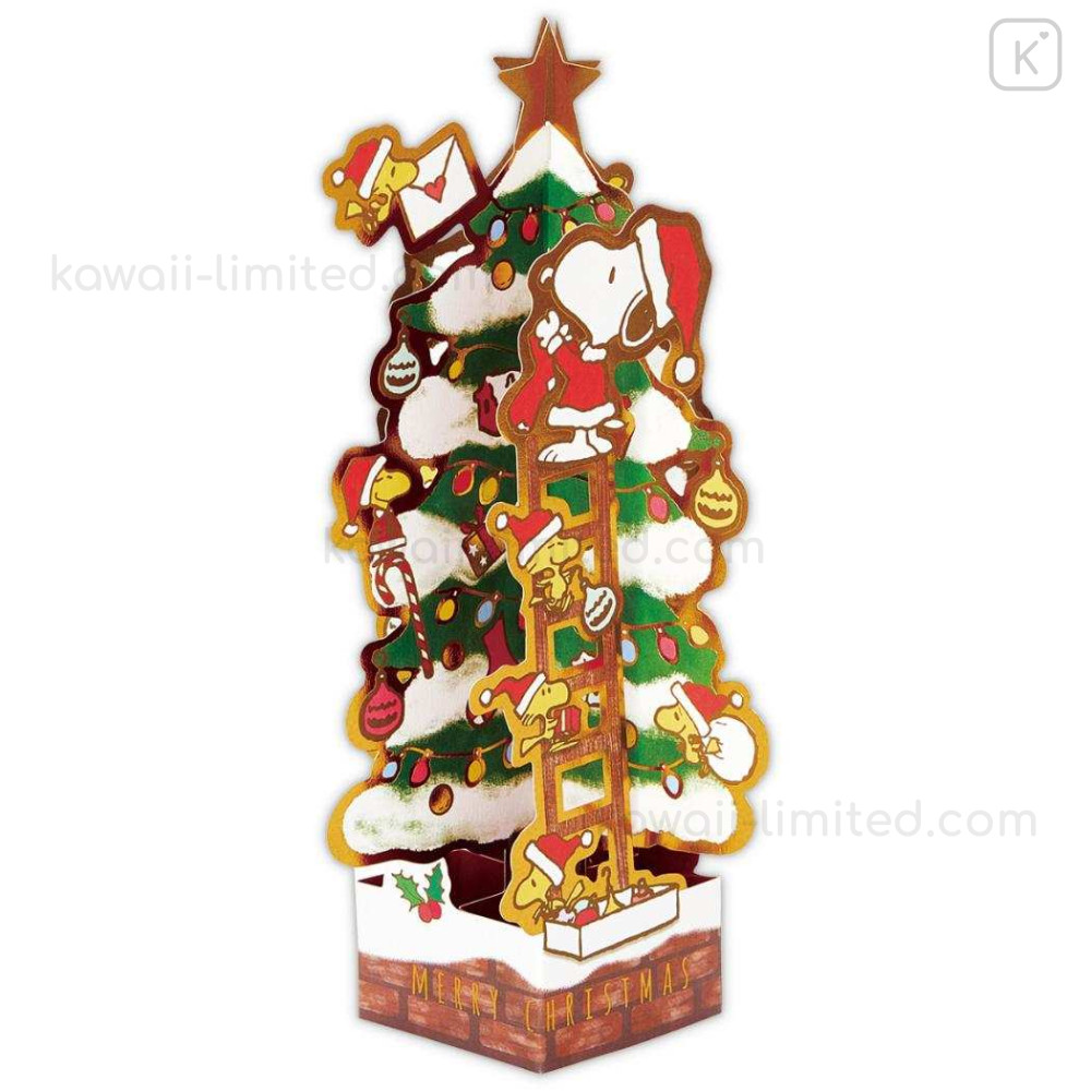 Japan Peanuts 3D Greeting Card - Snoopy & Woodstock : Christmas Tree Stocking Decoration