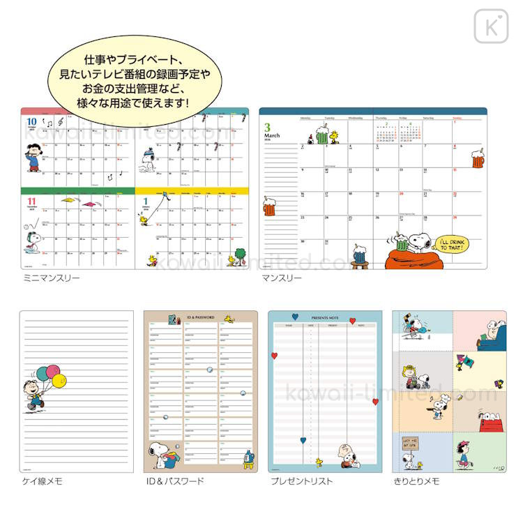 Japan Peanuts A5 Planner Monthly Schedule Book - Snoopy & Woodstock : Grey 2026