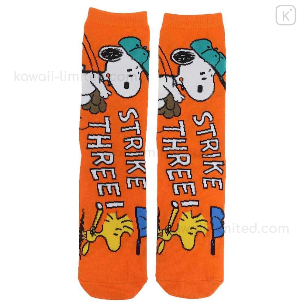 Japan Peanuts Ankle High Socks - Snoopy & Woodstock : Baseball Strike Three Orange