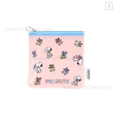 Japan Peanuts Flat Mini Pouch - Snoopy & Woodstock : Cuddly Bears Pink
