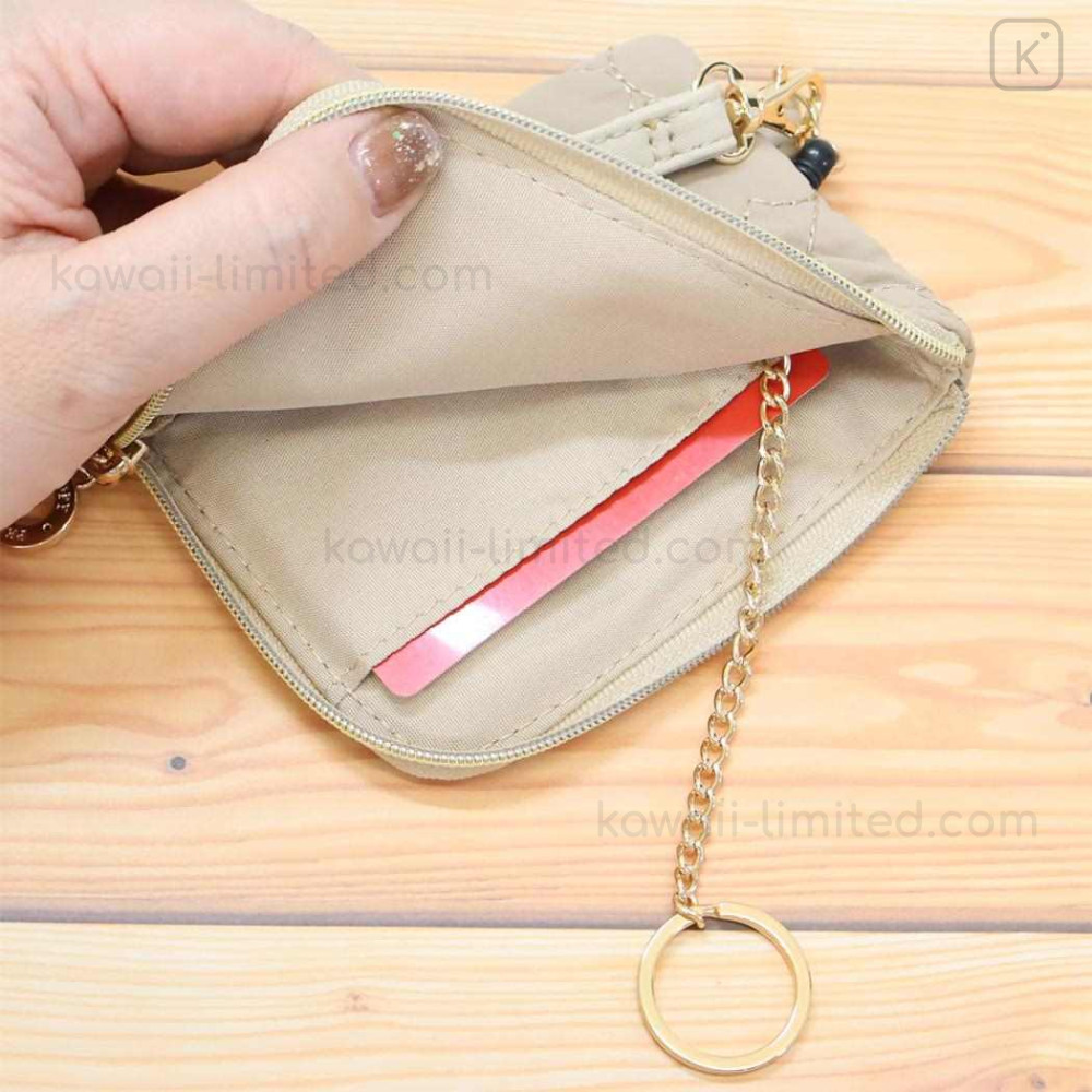 Japan Peanuts Mini Pouch & Pass Case Card Holder with Reel - Snoopy : Beige