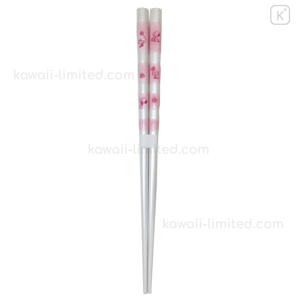 Japan Peanuts Natural Wood Chopsticks 21cm - Snoopy & Woodstock : Pink White