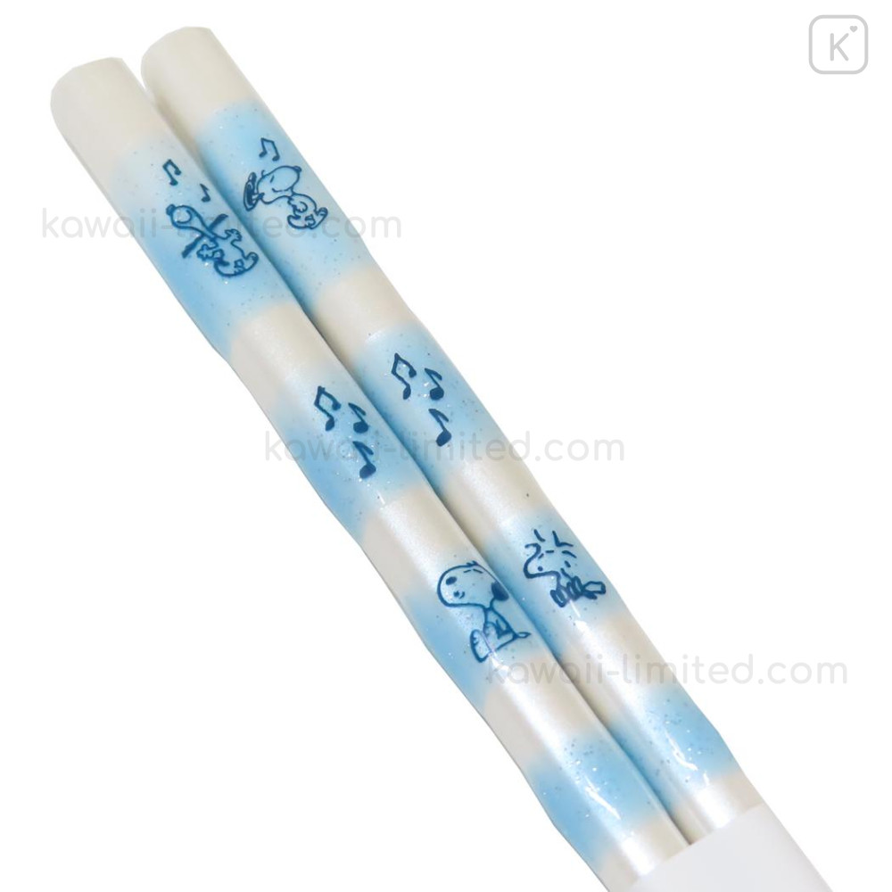 Japan Peanuts Natural Wood Chopsticks 23cm - Snoopy & Woodstock : Blue White