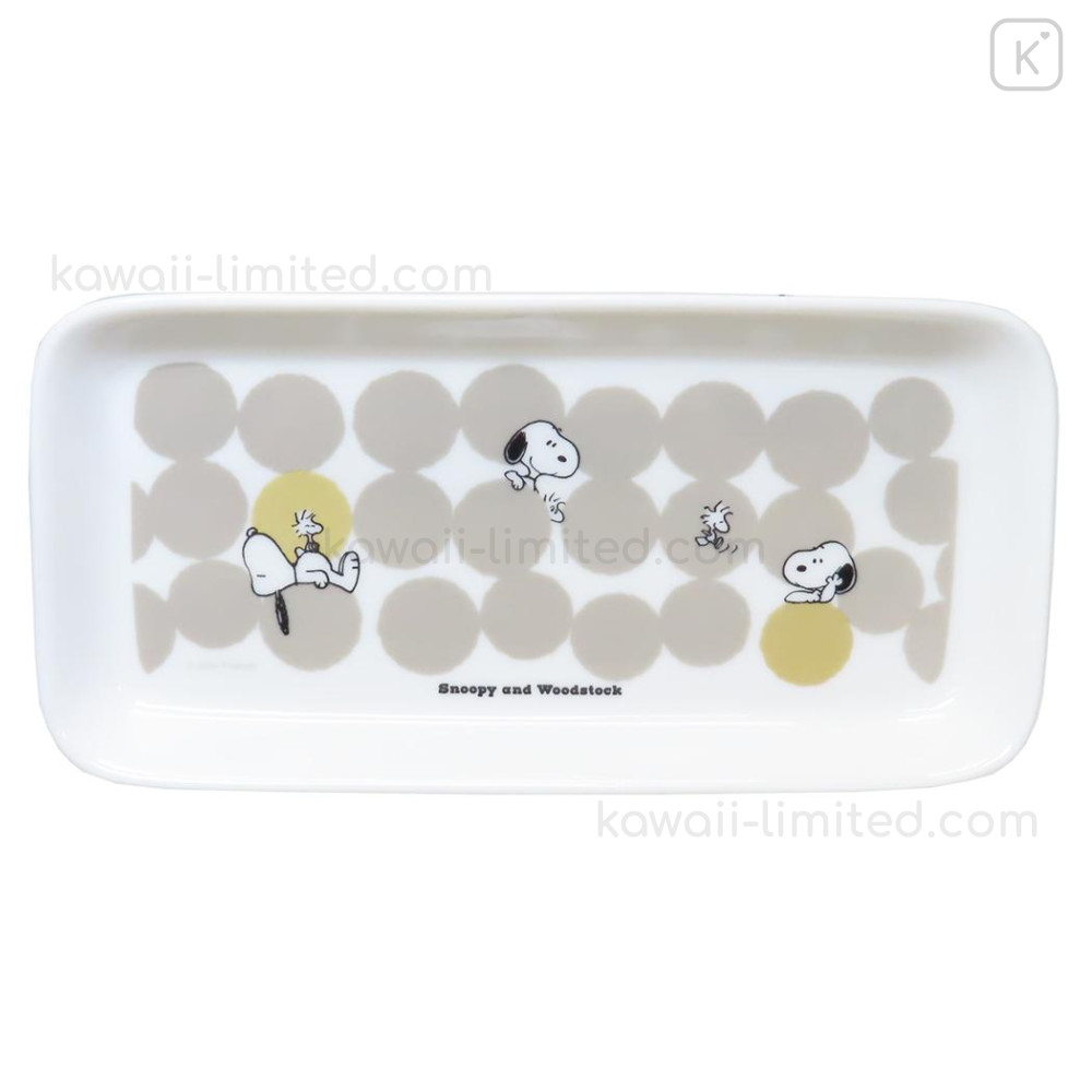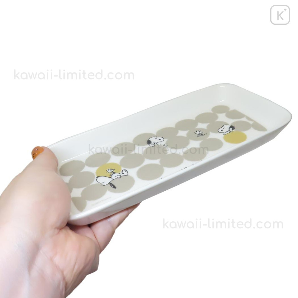 Japan Peanuts Porcelain Rectangle Plate - Snoopy & Woodstock : Grey Dots