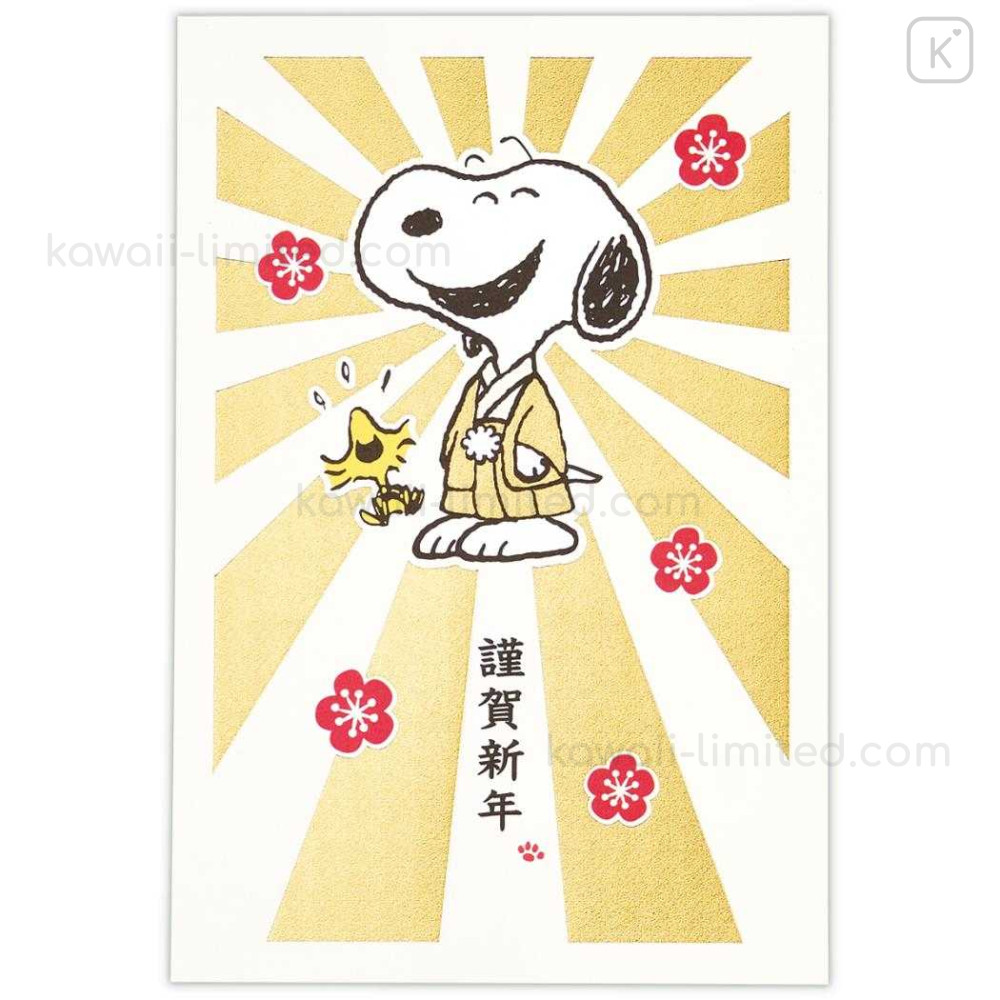 Japan Peanuts Postcard Set - Snoopy & Woodstock : Kimono New Year Plum Gold