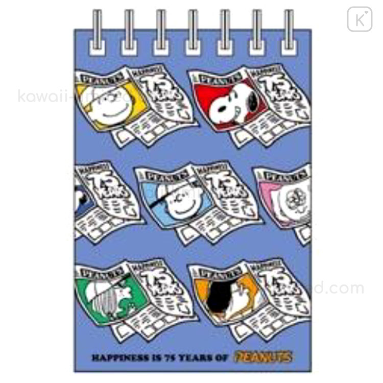 Japan Peanuts Ring Memo - Snoopy : 75th Anniversary Newspaper Blue