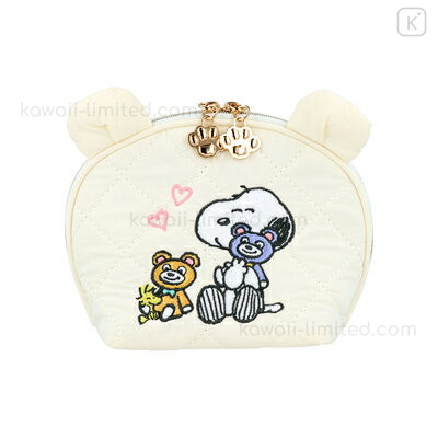 Japan Peanuts Round Cosmetic Pouch - Snoopy & Woodstock : Cuddly Bears White