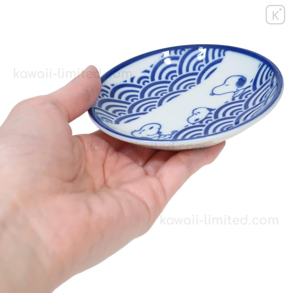 Japan Peanuts Soy Sauce Plate - Snoopy & Woodstock : Mino Ware Sea Wave