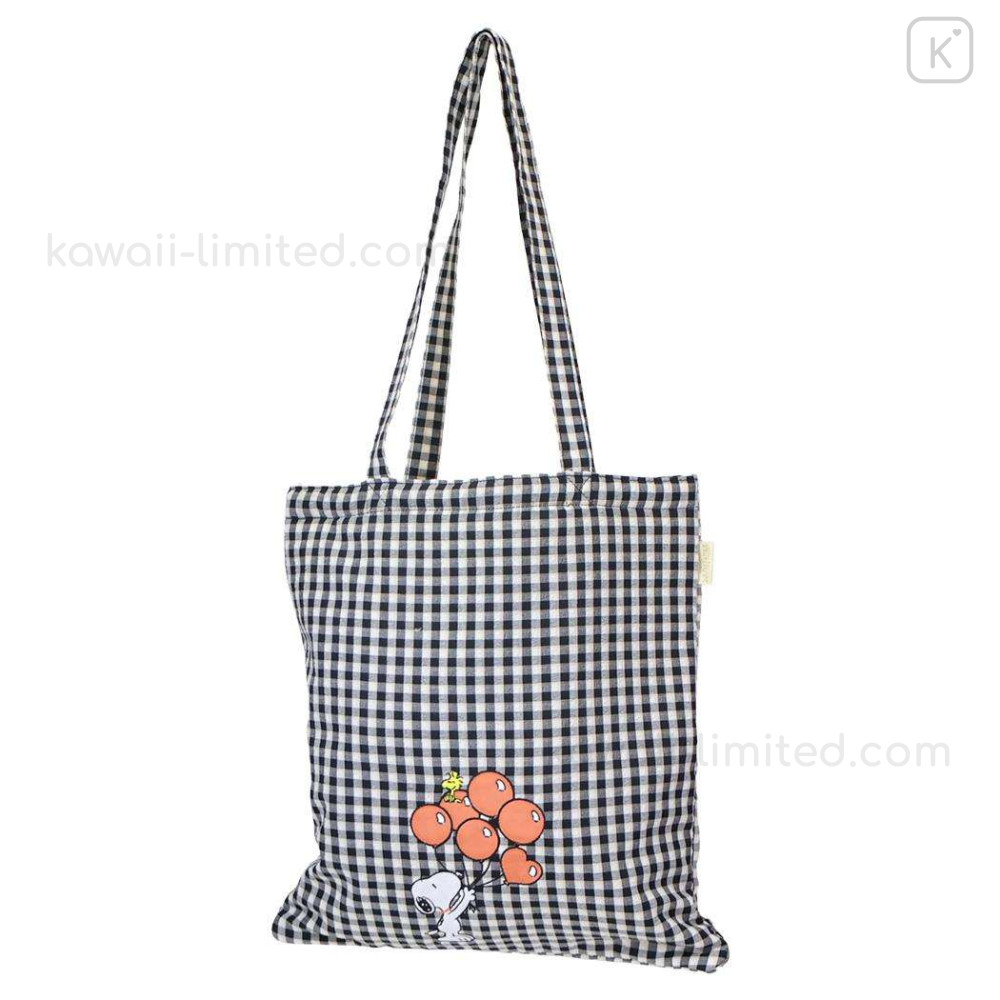 Japan Peanuts Tote Bag - Snoopy & Woodstock : Black Plaid Balloon