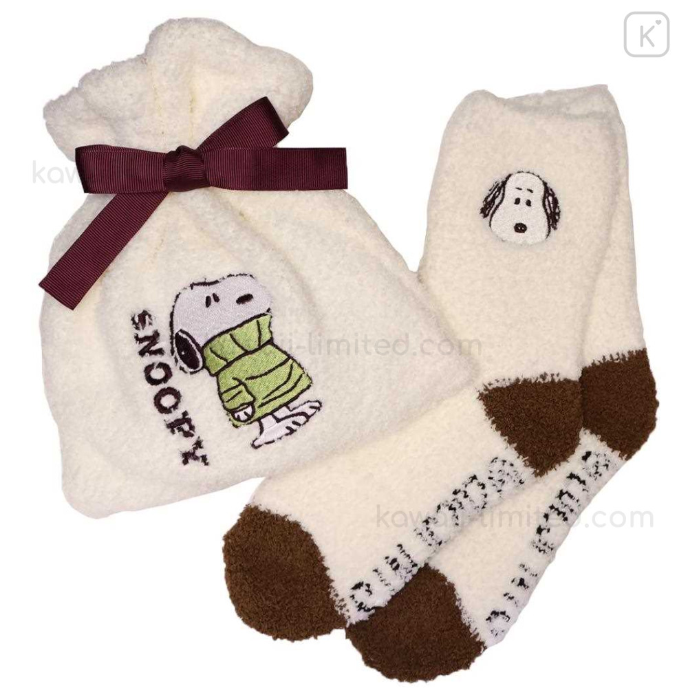 Japan Peanuts Warm Socks & Drawstring Bag - Snoopy : Beige Brown