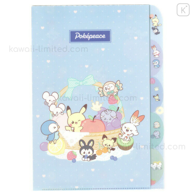 Japan Pokemon 5 Pockets A4 Index File Holder - Pokepeace Fruits Blue