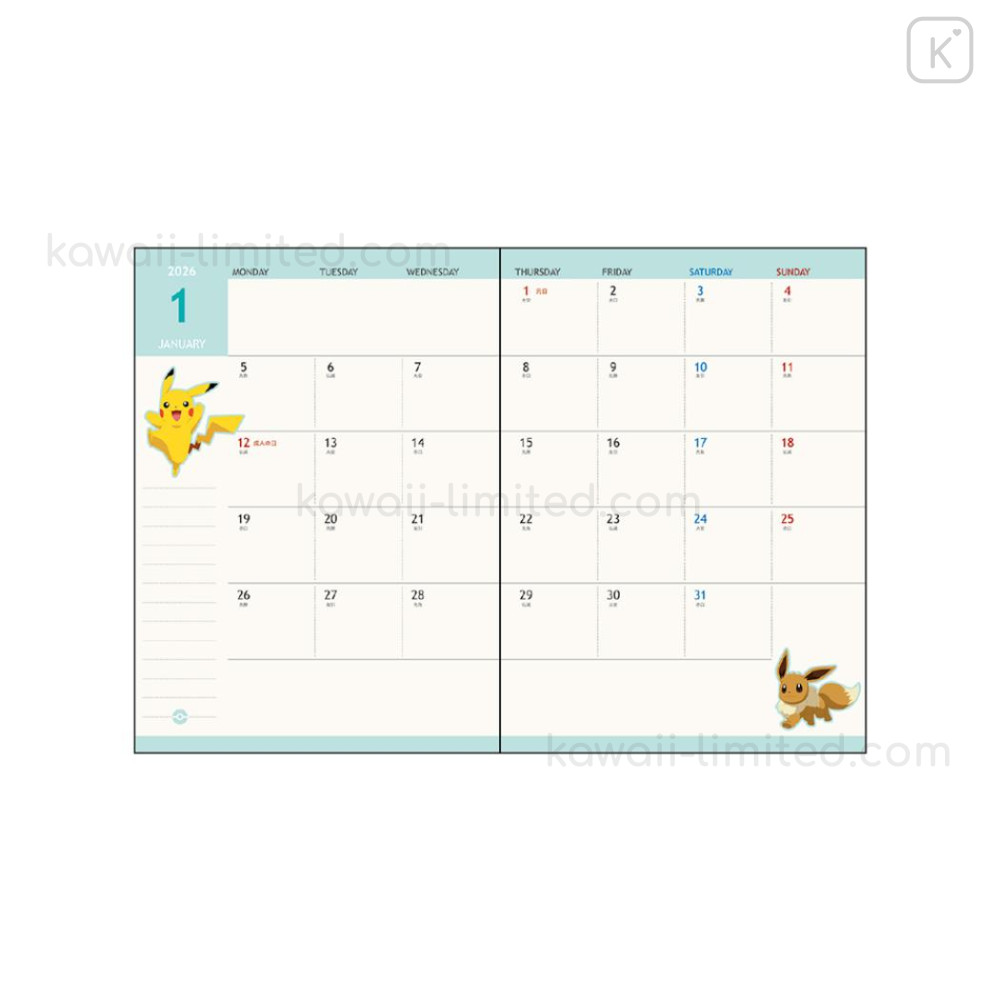 Japan Pokemon A6 Planner Monthly Schedule Book - Pikachu : Big Smile 2026