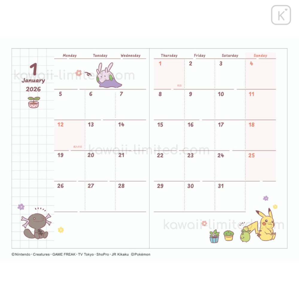 Japan Pokemon A6 Planner Monthly Schedule Book - Pikachu : Happy 2026