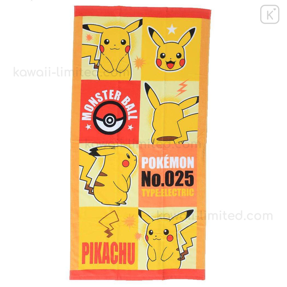 Japan Pokemon Bath Towel - Pikachu No. 025 Orange Yellow