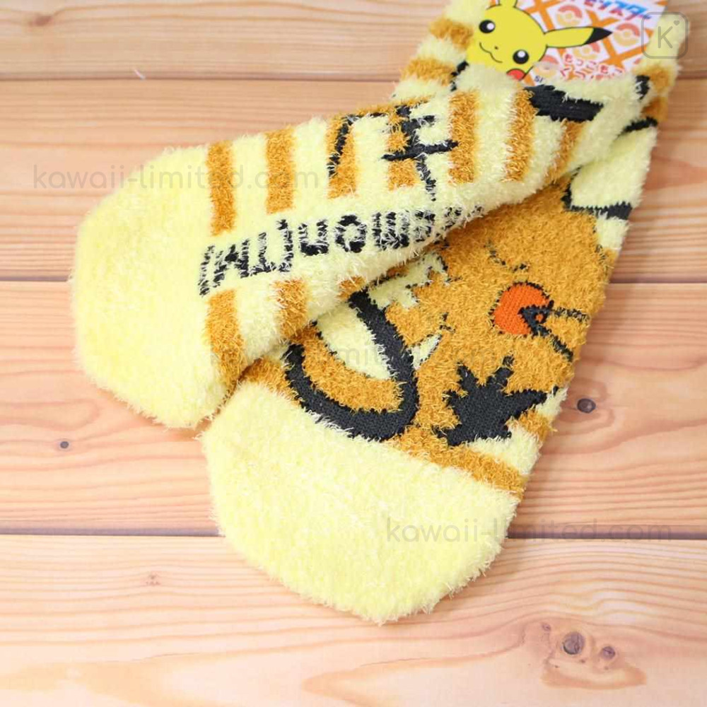 Japan Pokemon Fluffy Socks - Dedenne Yellow Brown Stripe