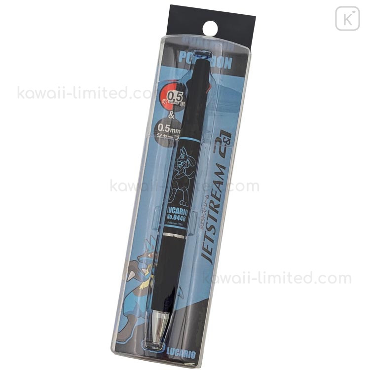 Japan Pokemon Jetstream 2&1 Multi Ballpoint Pen + Mechanical Pencil - Lucario : Metallic Blue Black