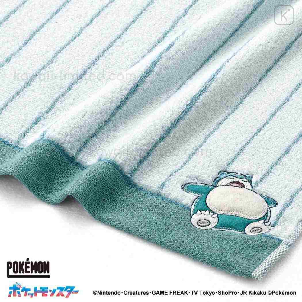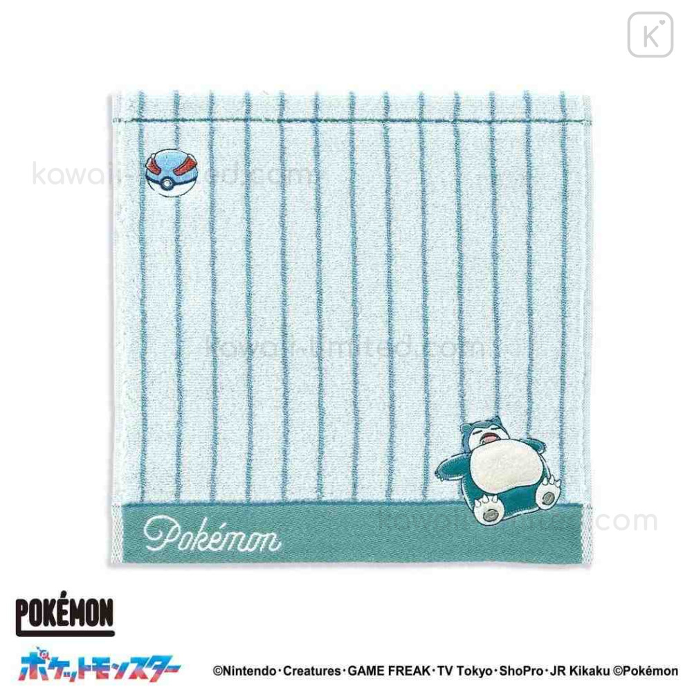 Japan Pokemon Mini Towel Jacquard Handkerchief - Snorlax : Blue Green Stripe
