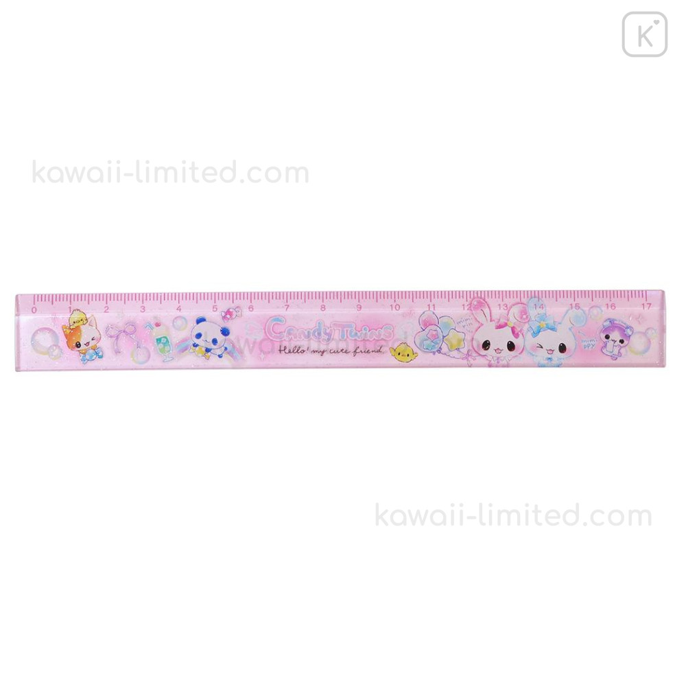 Japan Q-LiA 17cm Ruler - Kira Usa Twins Bubble Rabbit : Heisei Retro Y2K Pink