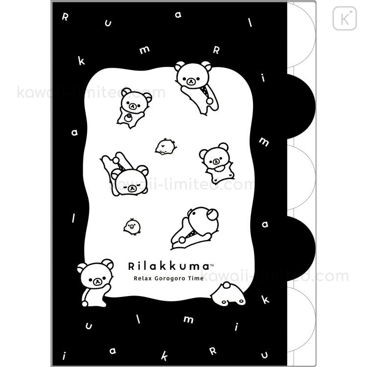 Japan San-x 5 Pockets A4 Index File Holder - Kiiroitori & Rilakkuma : Basic Rilakkuma Monochrome