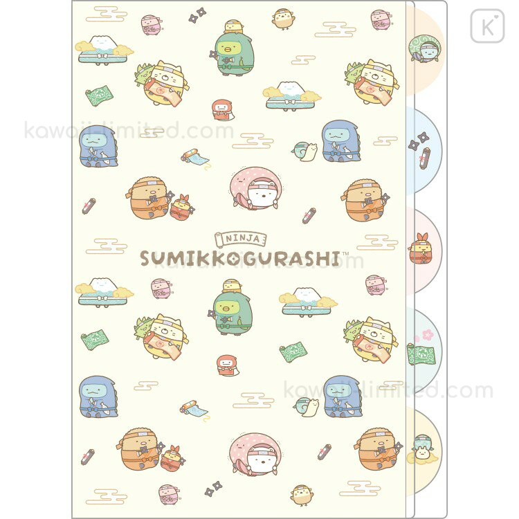 Japan San-x 5 Pockets A4 Index File Holder - Sumikko Gurashi : Ninja Training Light Yellow