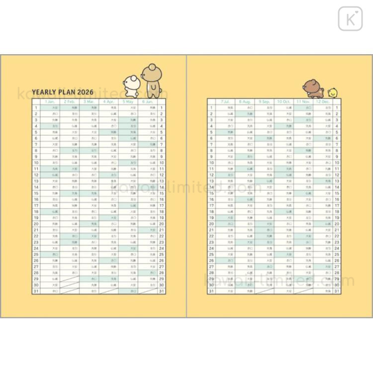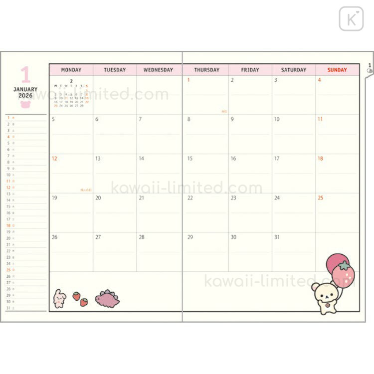 Japan San-X A5 Monthly Schedule Book - Rilakkuma : Basic Rilakkuma Flower Light Yellow 2026