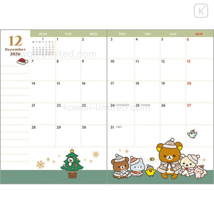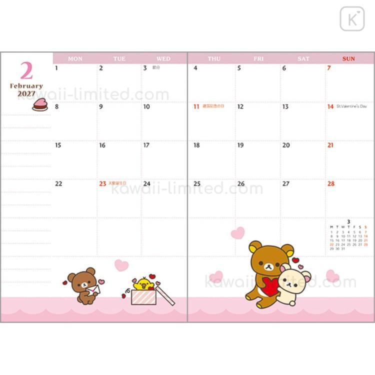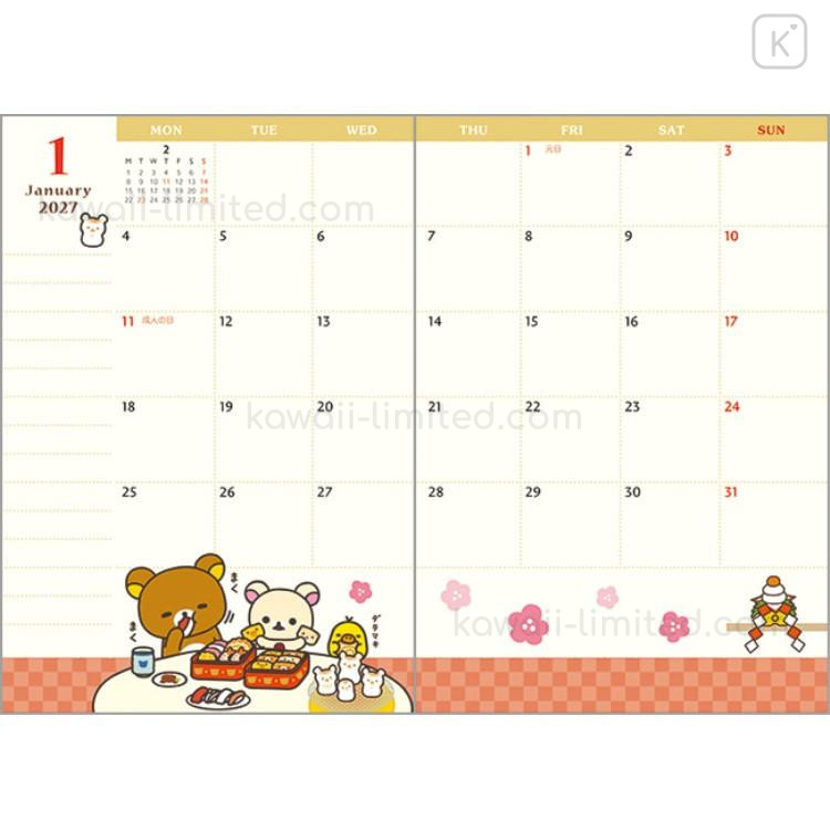 Japan San-X A6 Planner Monthly Schedule Book - Rilakkuma : Silhouette Star Night Pink 2026