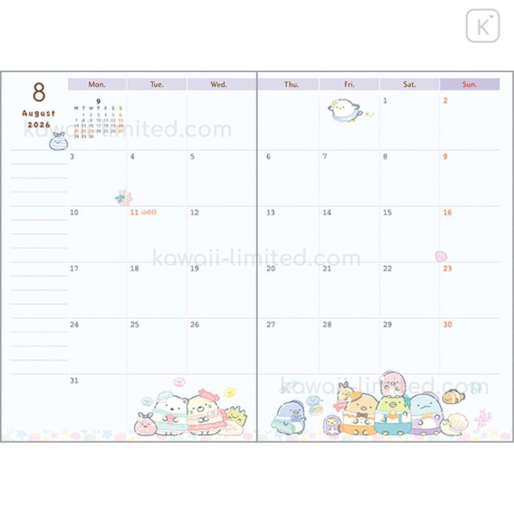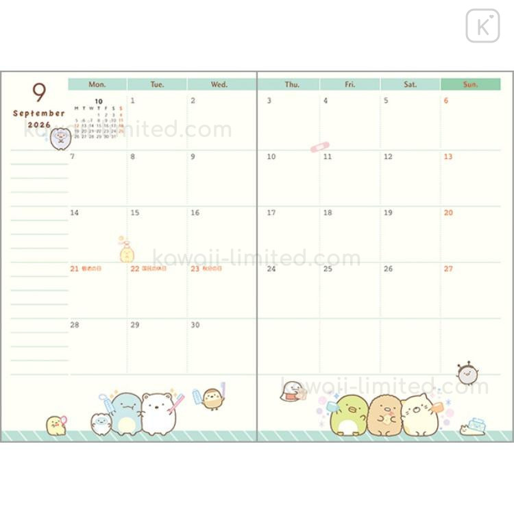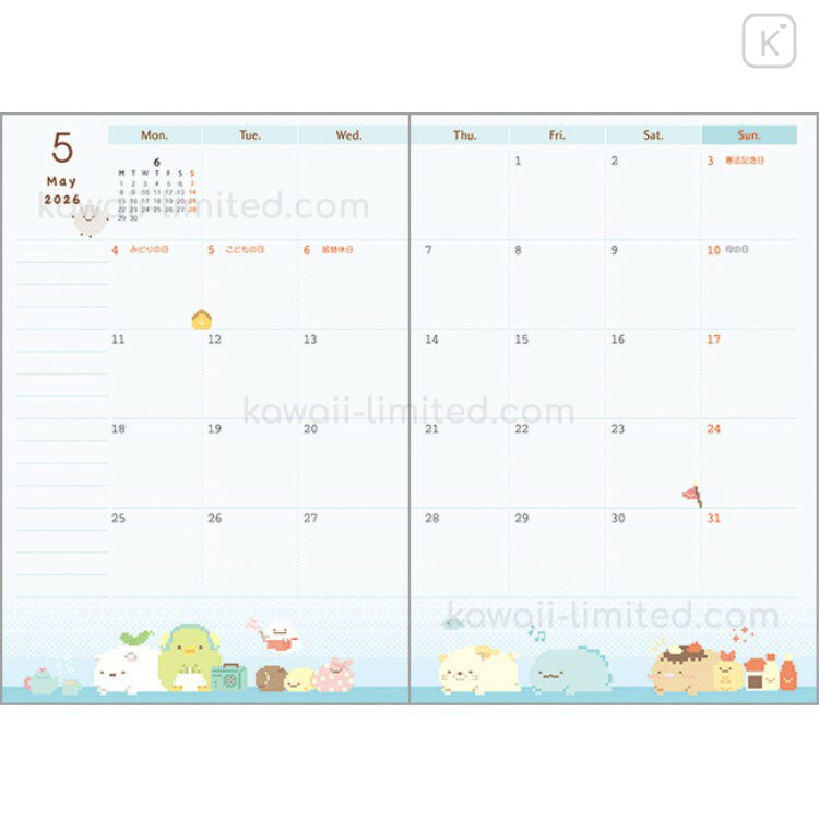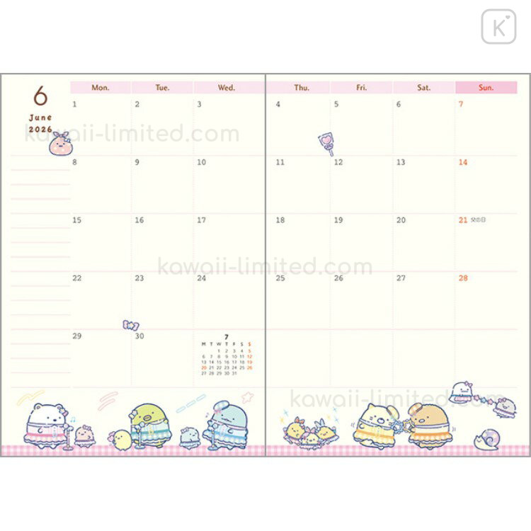 Japan San-X A6 Planner Monthly Schedule Book - Sumikko Gurashi : Amusement Park 2026