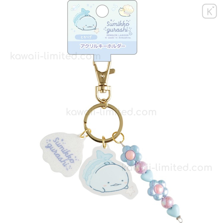 Japan San-X Acrylic Keychain 3 Charm - Sumikko Gurashi : Penguin Lagoon Tokage With Beads
