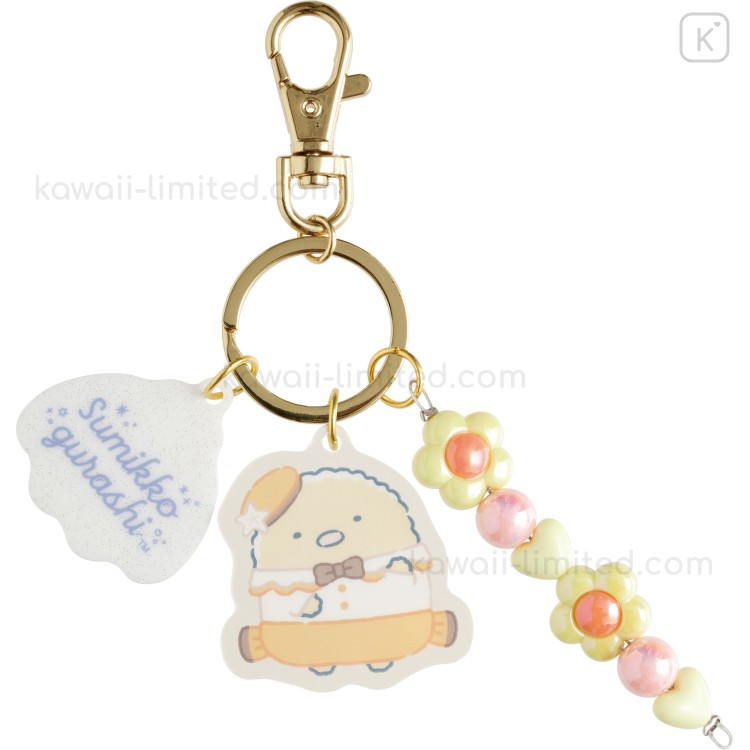 Japan San-X Acrylic Keychain 3 Charm - Sumikko Gurashi : Penguin Lagoon Tonkatsu Fried Pork With Beads