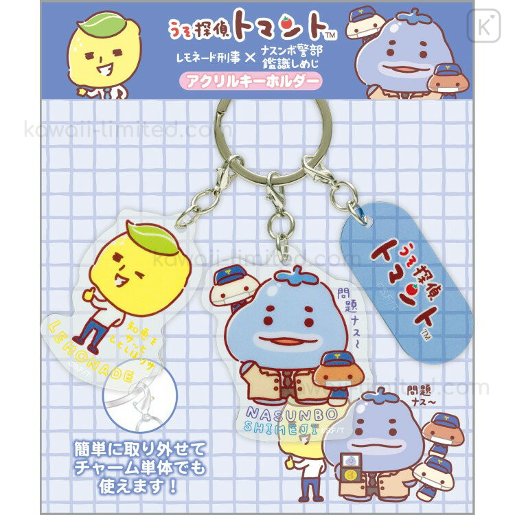 Japan San-X Acrylic Keychain 3 Charm - Uso Tantei Tomanto : Detective Lemonade & Inspector Nasunbo Eggplant & Shimeji Mushroom