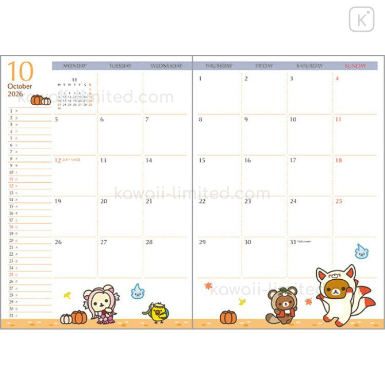 Japan San-X B6 Monthly Schedule Book - Rilakkuma : Silhouette 2026