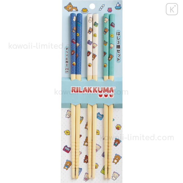 Japan San-X Bamboo Chopsticks 23cm Set - Rilakkuma : Rilakkuma Gaming
