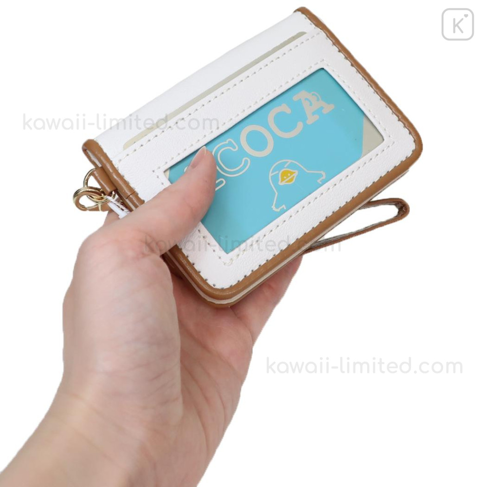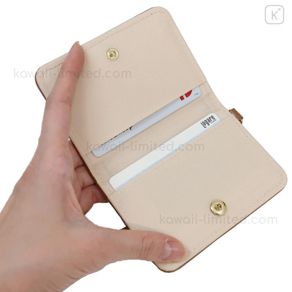 Japan San-X Bifold Pass Case Card Holder with Reel - Rilakkuma : Beige Stretching