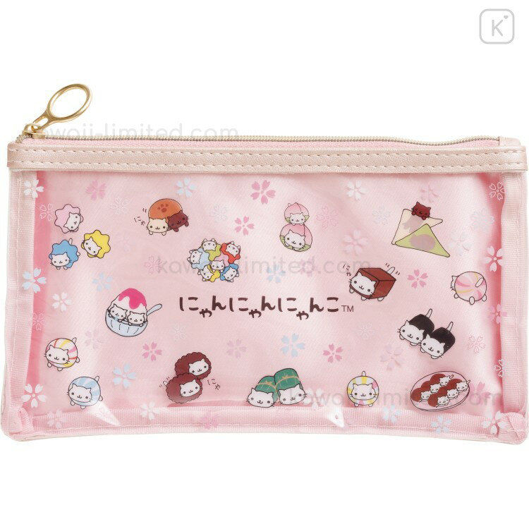 Japan San-X Clear Flat Pouch Pencil Case - Nyan Nyan Nyanko : All Over Pattern