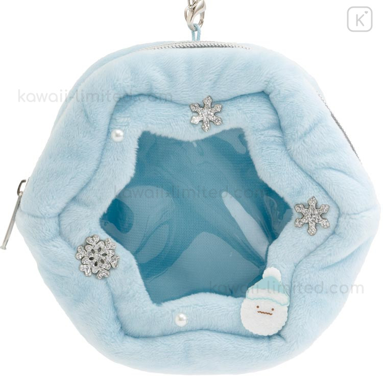 Japan San-X Die-cut Mini Pouch with Bag Charm - Sumikko Gurashi : Honey Forest Christmas Snowflake