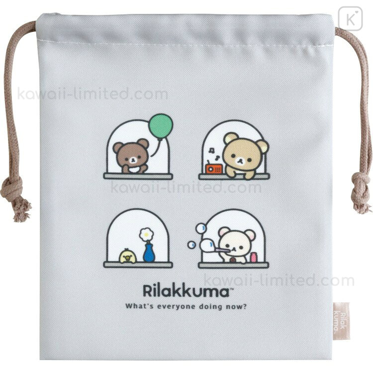 Japan San-X Drawstring Bag - Rilakkuma : Basic Rilakkuma Favorite Things Grey