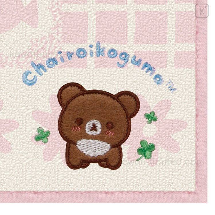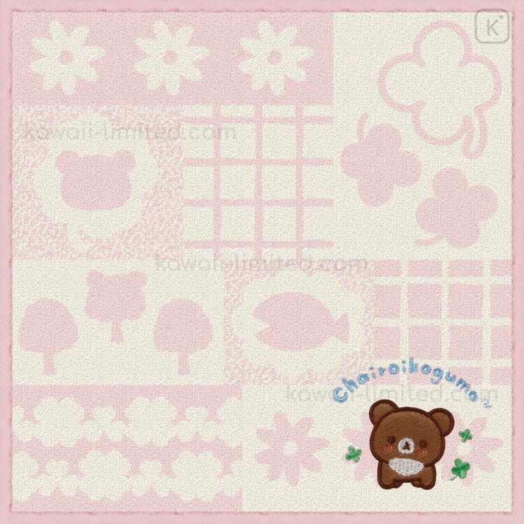 Japan San-X Embroidered Mini Towel Handkerchief - Chairoikoguma : Chairoikoguma's Kumakyun Days Pink