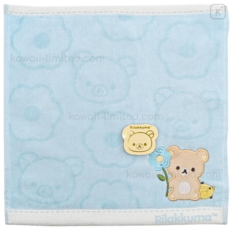 Japan San-X Embroidered Mini Towel Handkerchief - Kiiroitori & Rilakkuma : Basic Rilakkuma Flower Blue