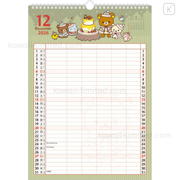 Japan San-X Family Wall Calendar - Rilakkuma : 2026